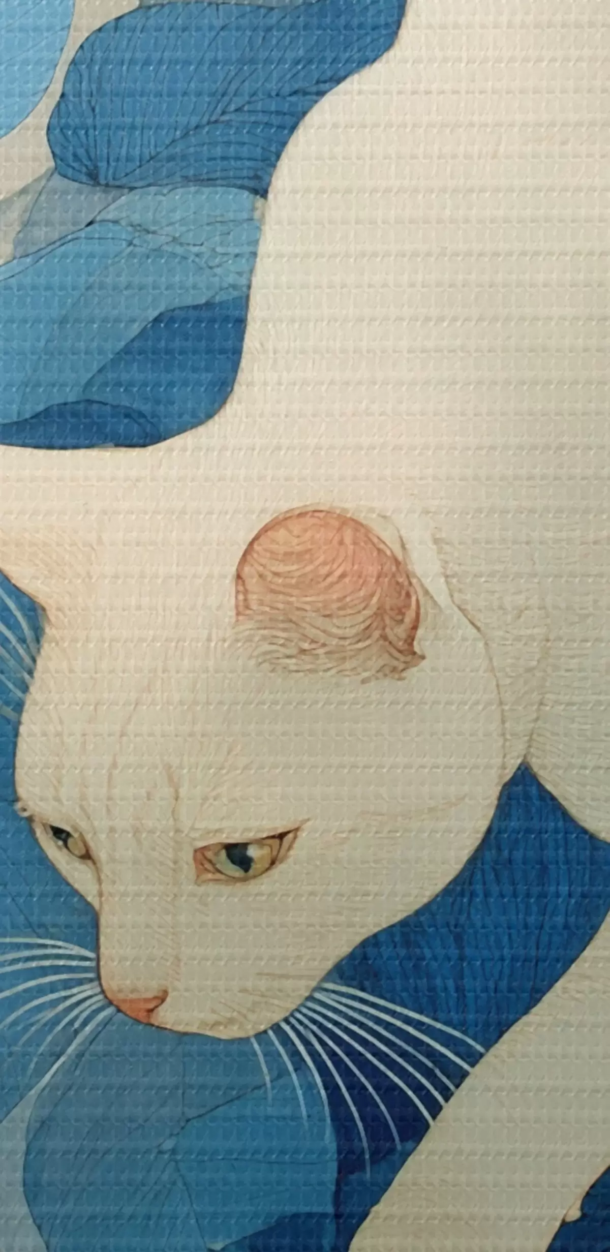 Țesătura fină a firelor de pe această pânză seamănă cu suprafața pânzelor artiștilor profesioniști.