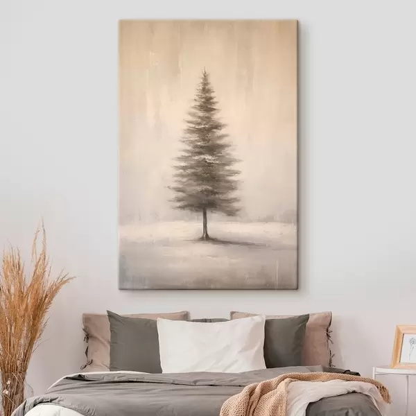 Pictură pe pânză Brad monocrom. Peisaj minimalist de iarnă Nr s46465