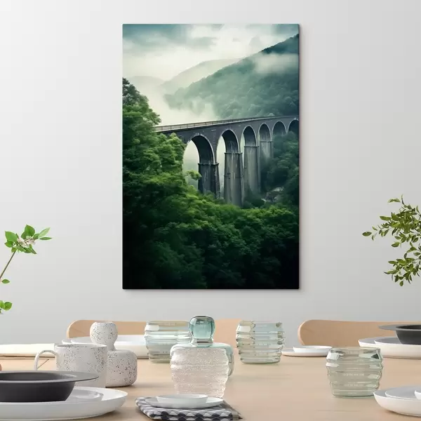 Pictură pe pânză Viaduct din piatră deasupra văii împădurite și încețoșate Nr s46483