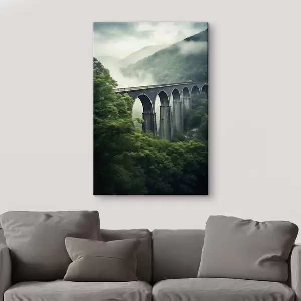 Pictură pe pânză Viaduct din piatră deasupra văii împădurite și încețoșate Nr s46483