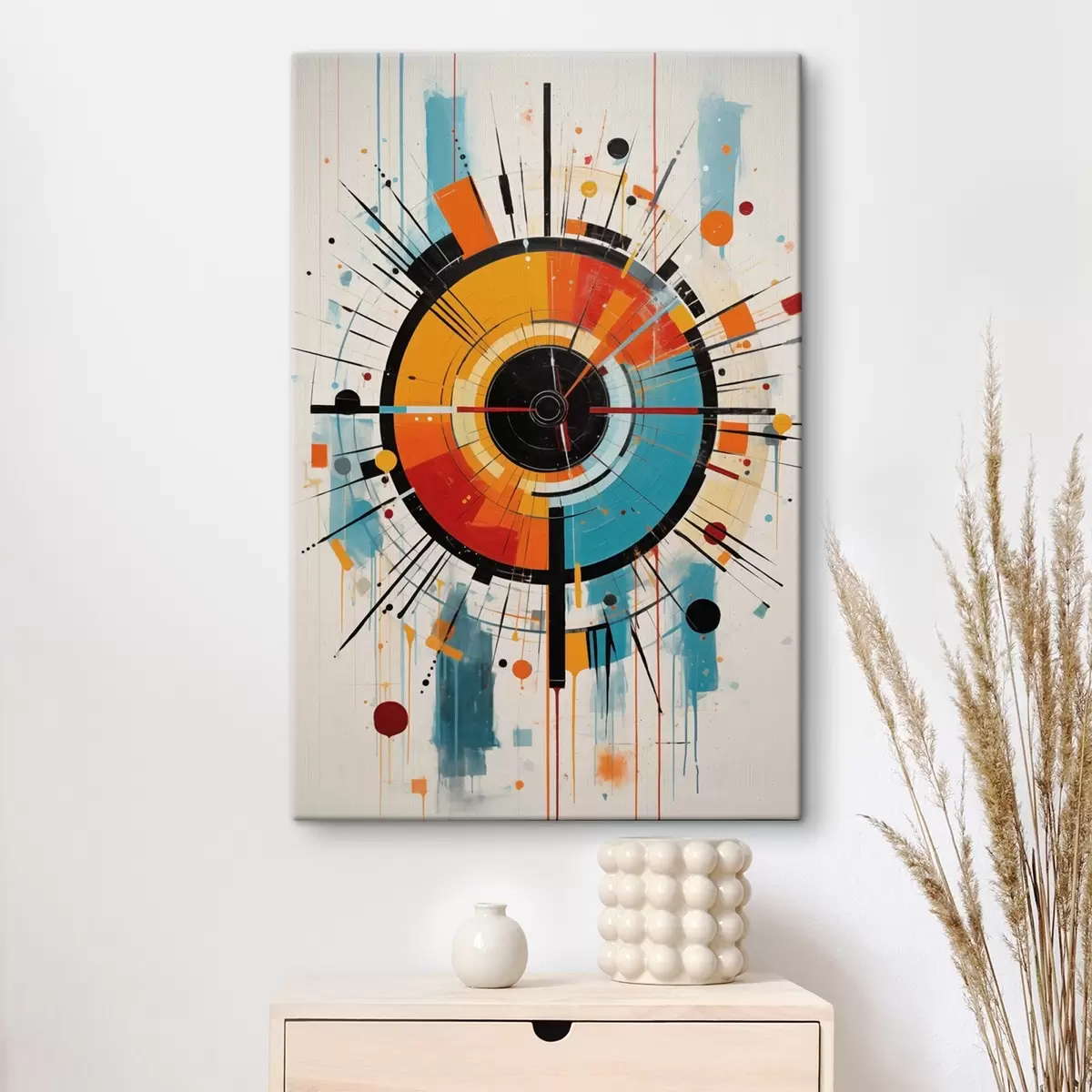 Pictură pe pânză Explozia radială în verde-albastru, portocaliu și negru Nr s46485