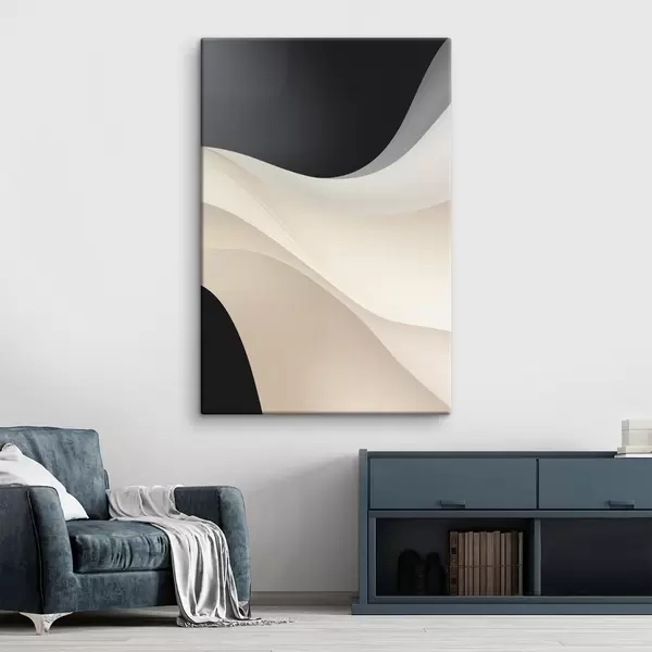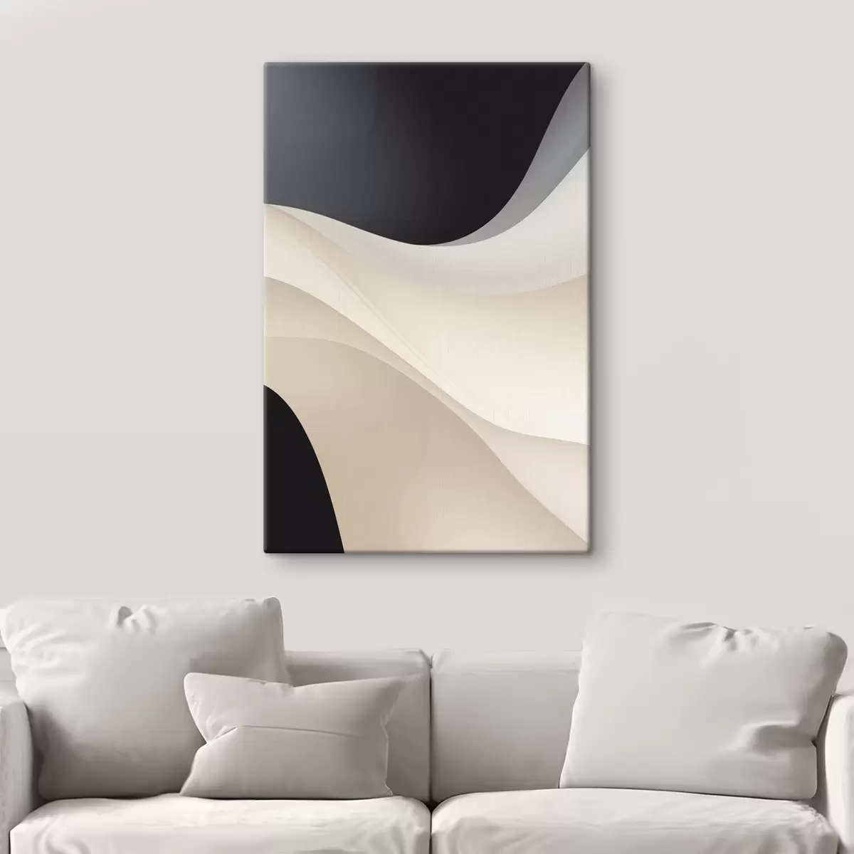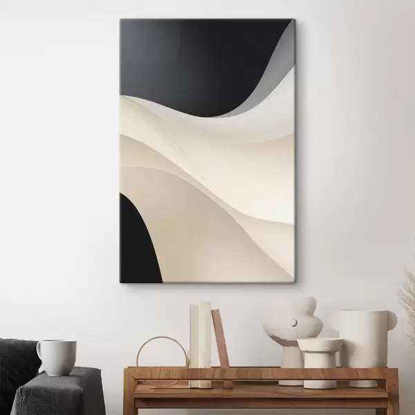 Pictură pe pânză Curbe fluide stratificate în negru, crem și gri-maro Nr s46492