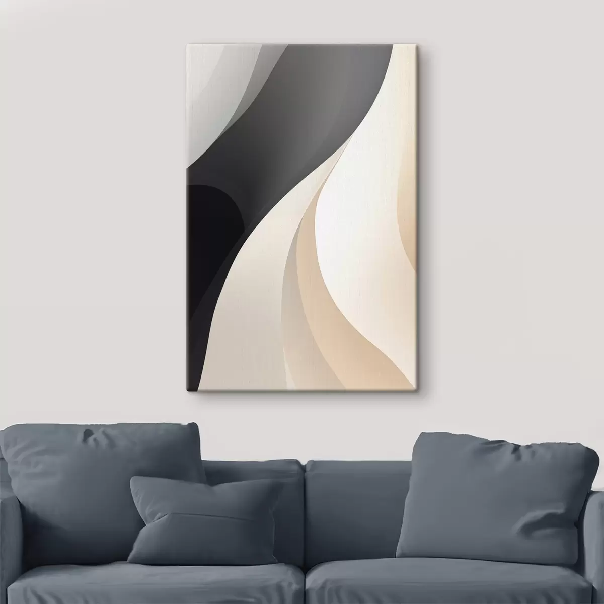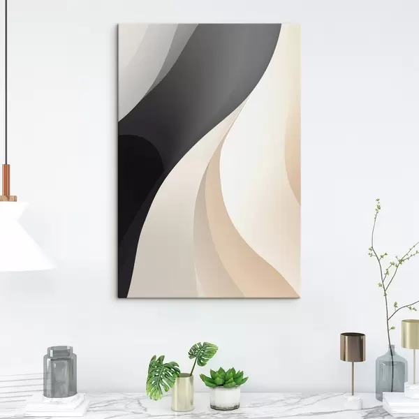 Pictură pe pânză Curbe elegante suprapuse în culori cărbune, fildeș și nisip Nr s46493