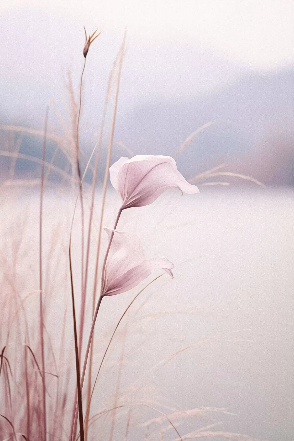 Tablouri Flori delicate de culoare roz lângă malul liniștit al lacului s46503