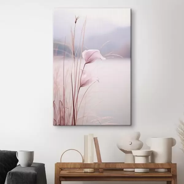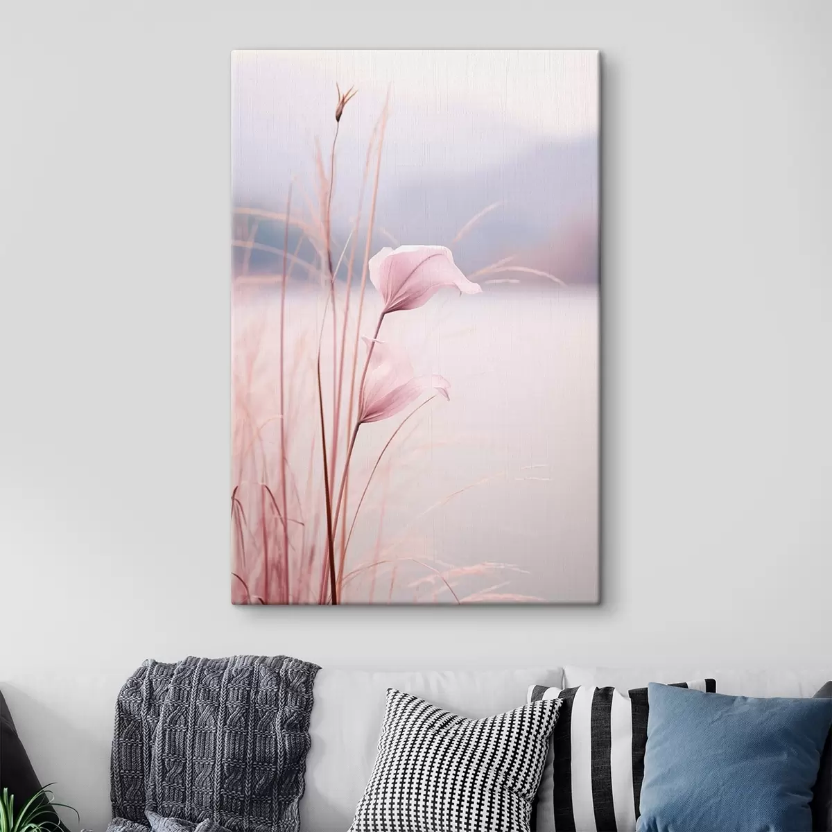 Pictură pe pânză Flori delicate de culoare roz lângă malul liniștit al lacului Nr s46503