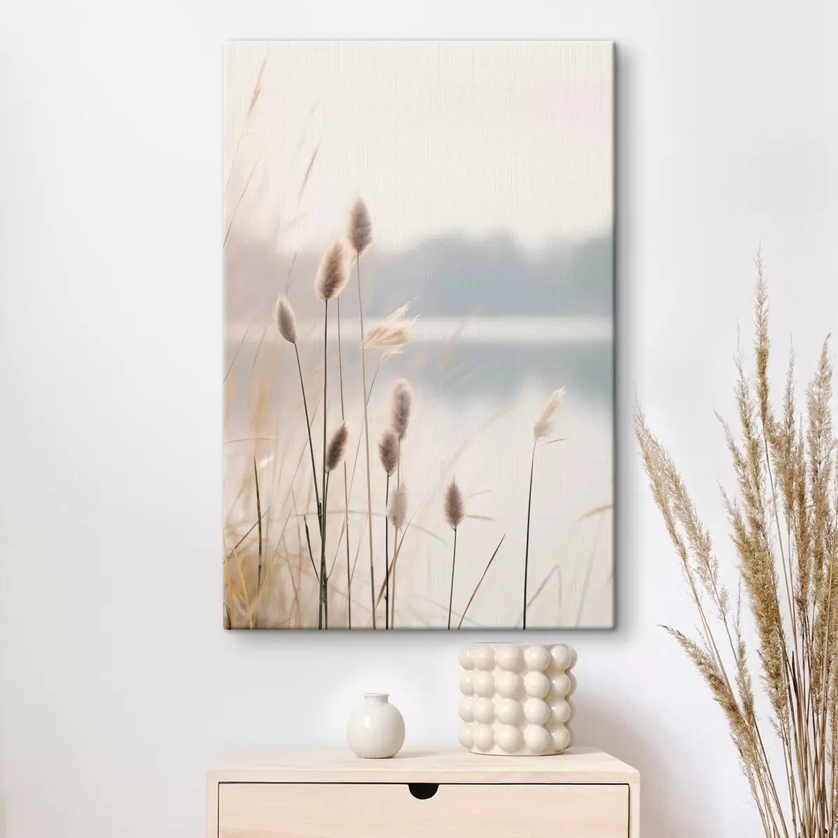 Tablouri Stuf moale pe malul unui lac încețoșat, tonuri pastelate de bej s46504