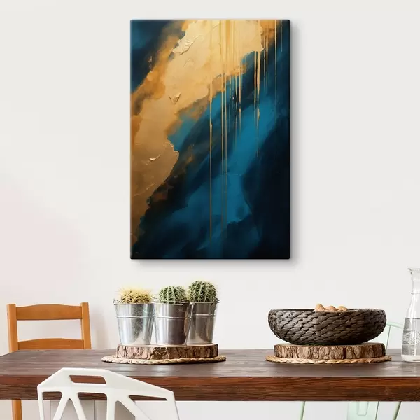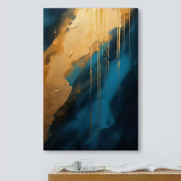 Pictură pe pânză Teal și albastru intens abstract cu accente calde și fluide Nr s46509