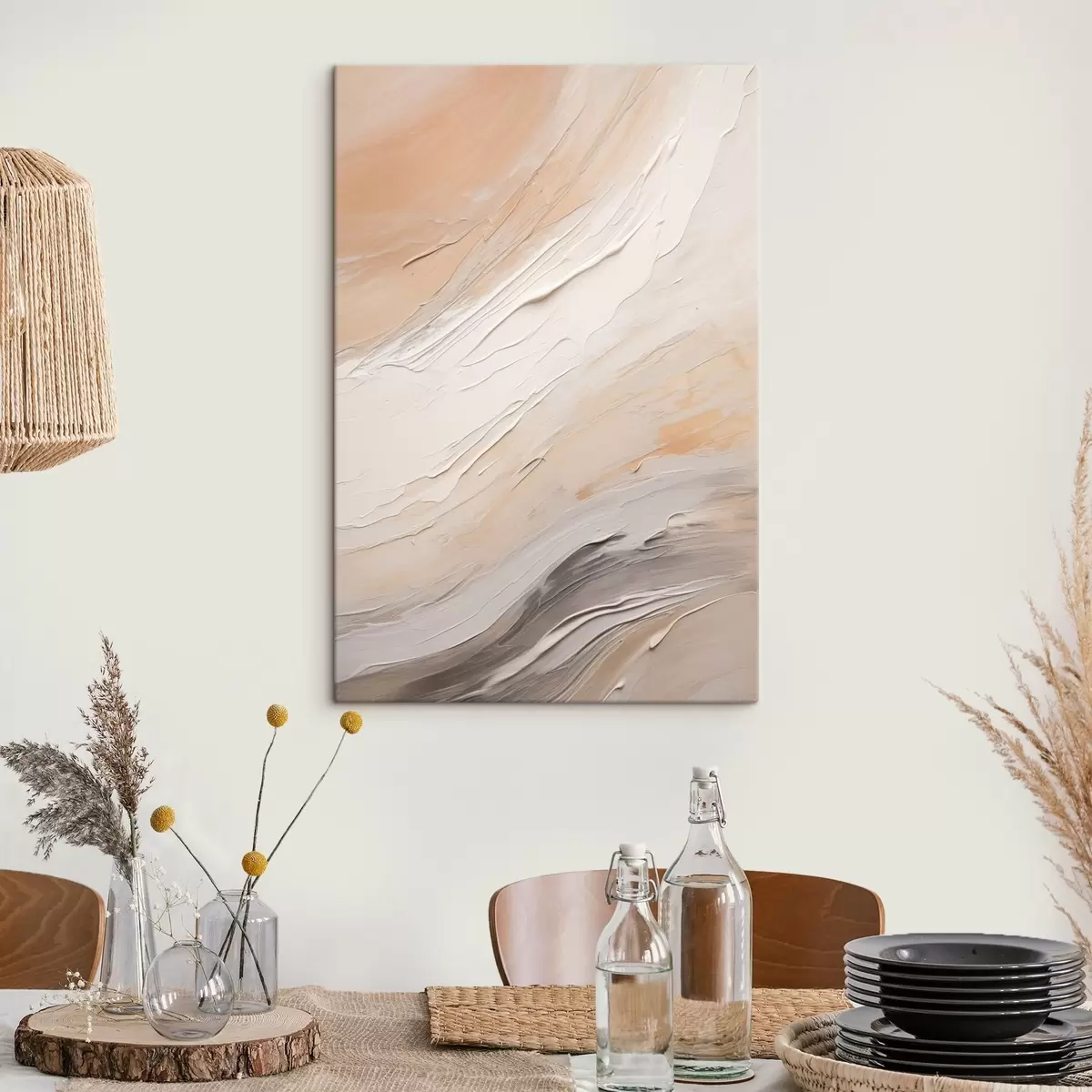 Pictură pe pânză Tencuială texturată în spirale de culoare bej cald cu gri deschis Nr s46511