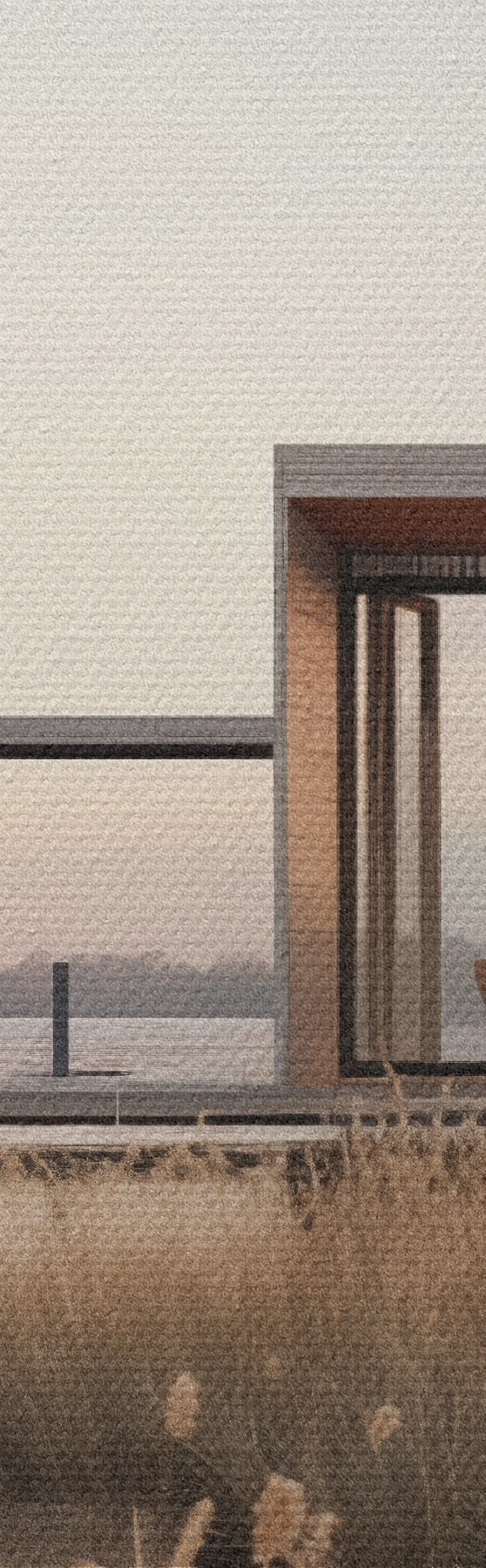 Pictură pe pânză Cabana modernă lângă lac, printre stufărișuri, în amurgul blând Nr s46513