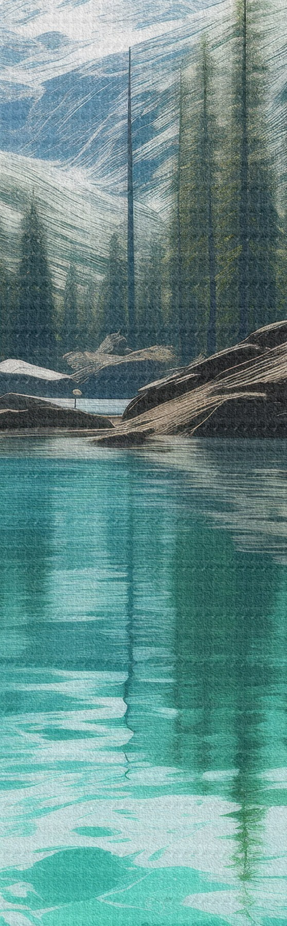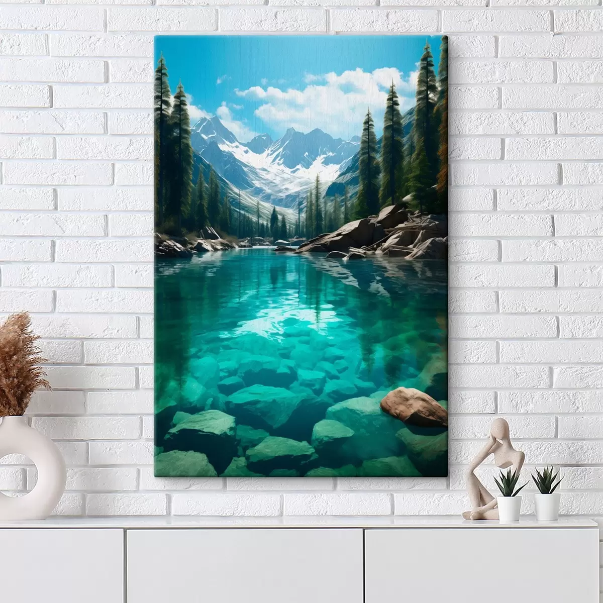 Pictură pe pânză Râu alpin limpede, cu albia stâncoasă și vârfuri înzăpezite Nr s46514