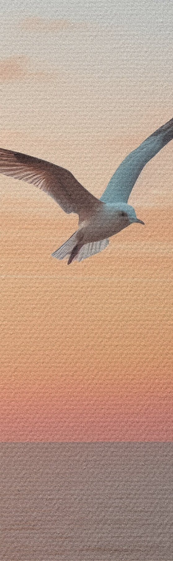 Pictură pe pânză Pescăruș deasupra mării la un apus roz-piersic Nr s46520