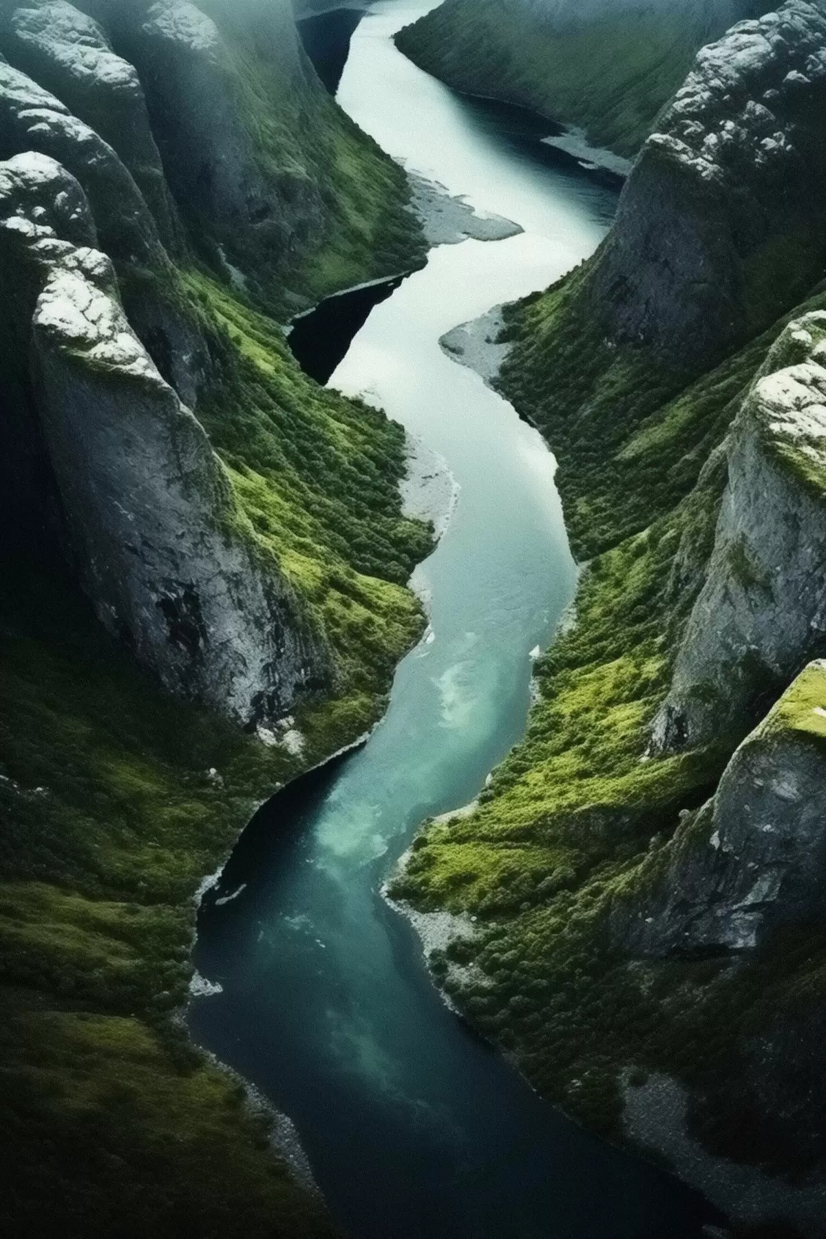 Tablouri Râu șerpuitor între stânci, vedere aeriană s46521
