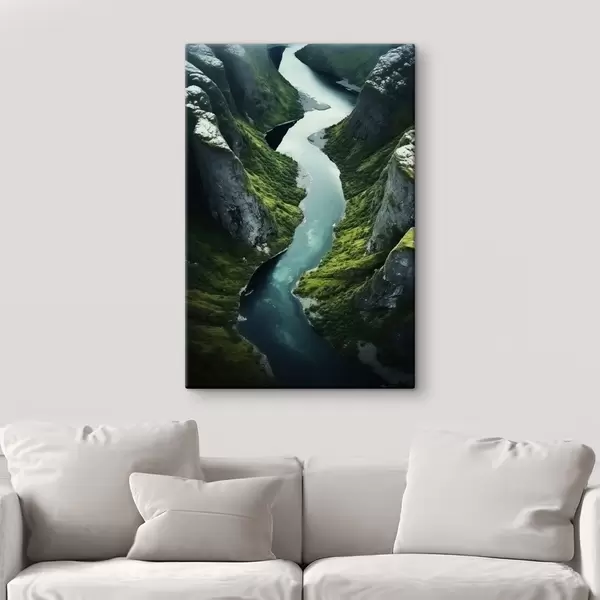 Pictură pe pânză Râu șerpuitor între stânci, vedere aeriană Nr s46521