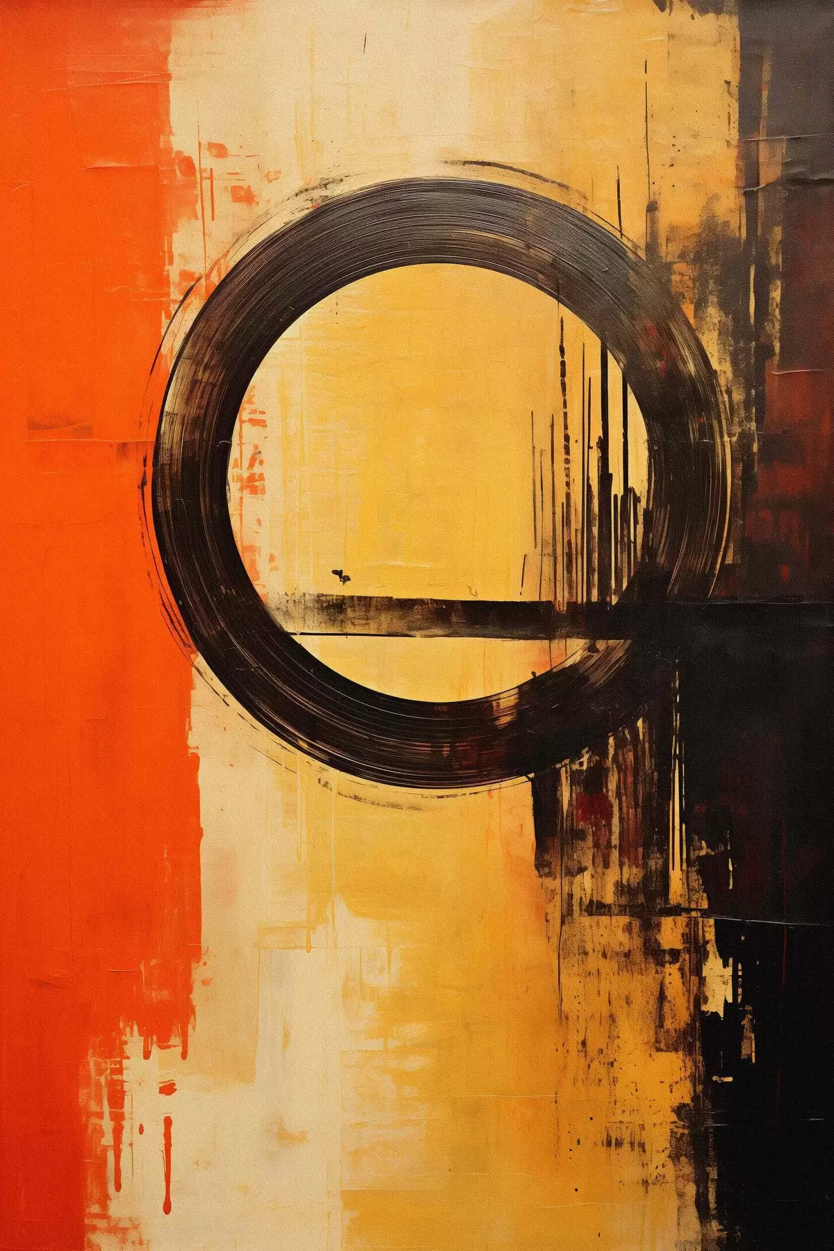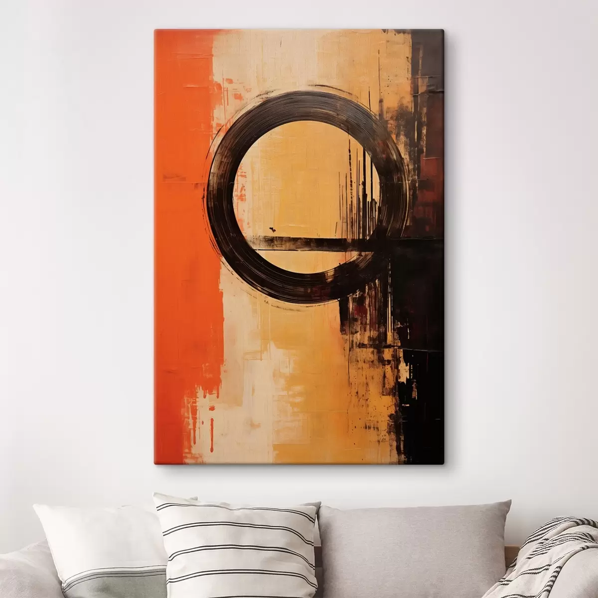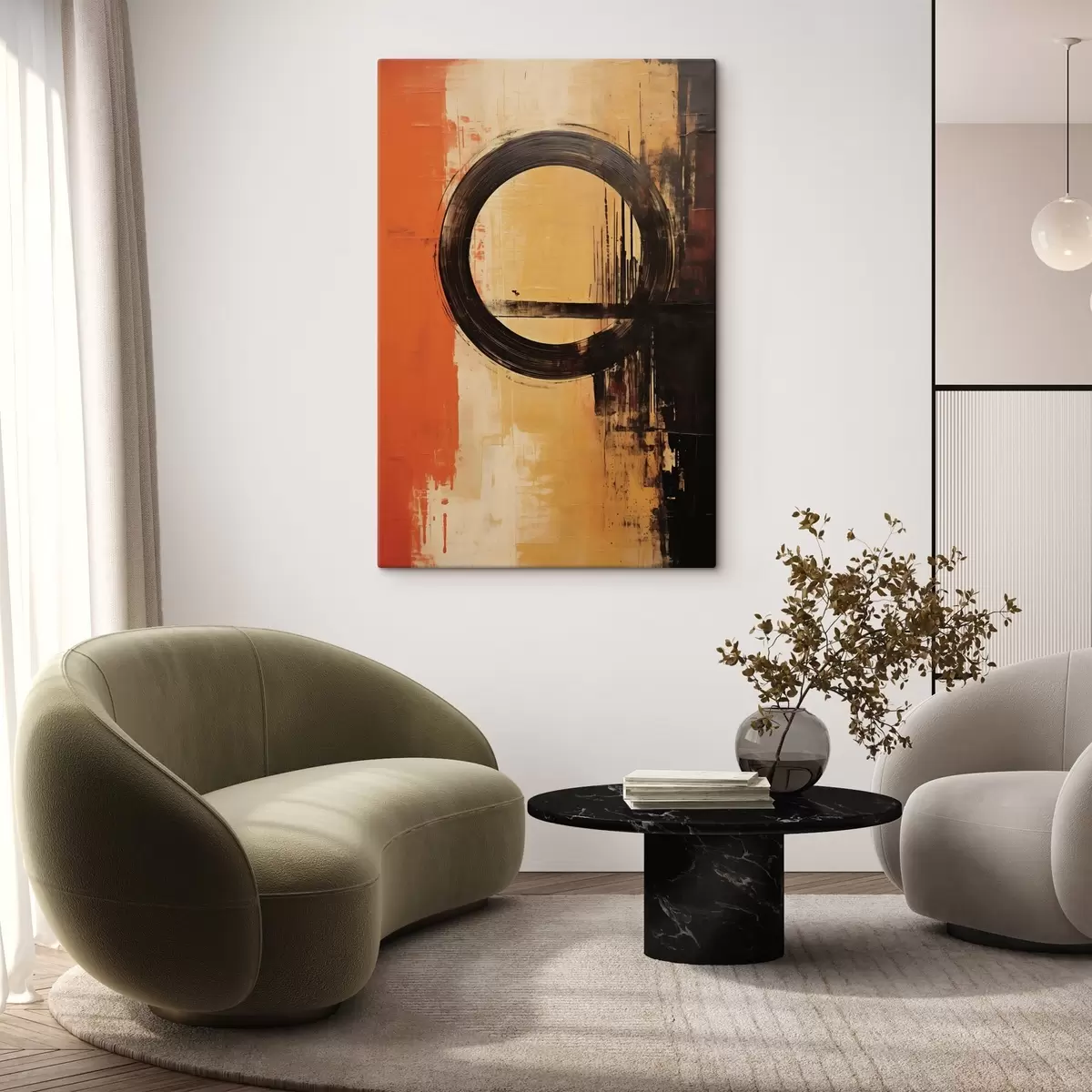 Tablouri Rezumat cu un inel negru pe un fundal de teracotă-nisip s46529