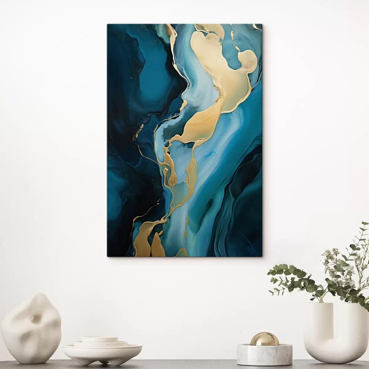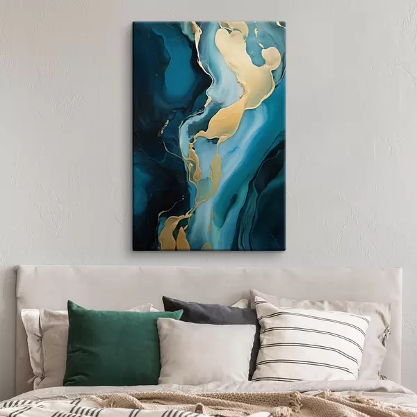 Pictură pe pânză Albastru-verde abstract cu un flux de ocru Nr s46530