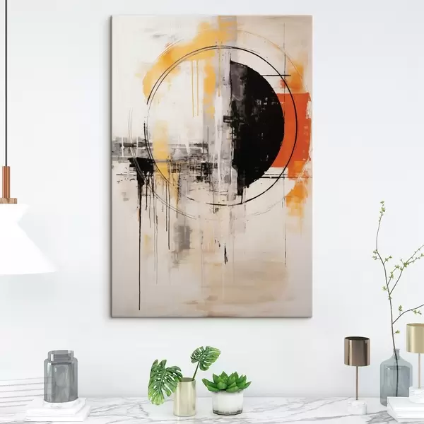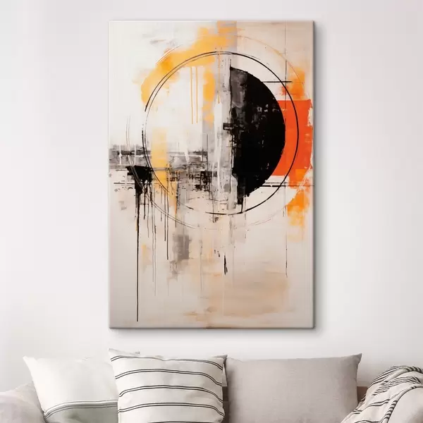 Pictură pe pânză Cerc monocromatic portocaliu cu picături texturate Nr s46536