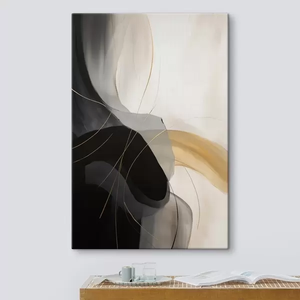 Pictură pe pânză Curbe delicate în negru și bej, cu un accent cald Nr s46542