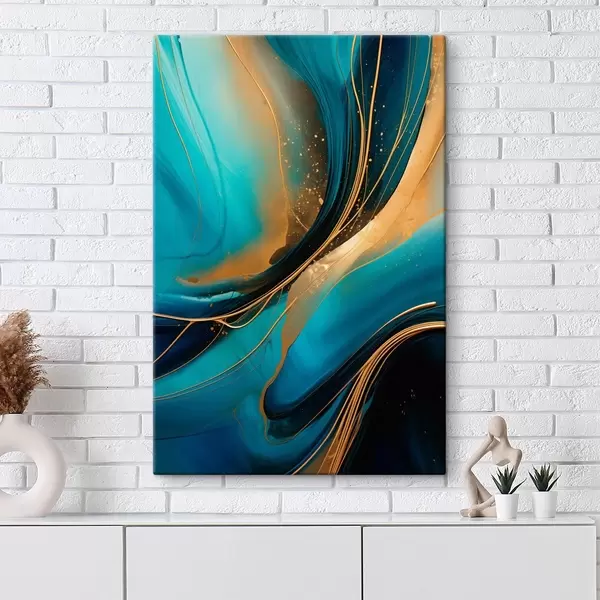 Pictură pe pânză Curgere turcoaz cu fire subțiri de ocru Nr s46543