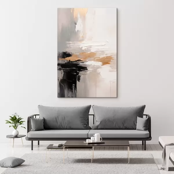 Pictură pe pânză Tușe în tonuri nude cu straturi contrastante de negru și ocru Nr s46544