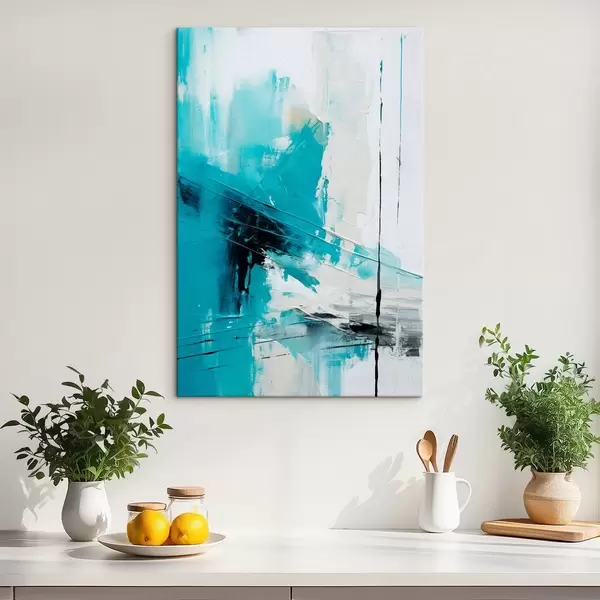 Pictură pe pânză Linii turcoaz pe fond alb cu o linie neagră Nr s46545