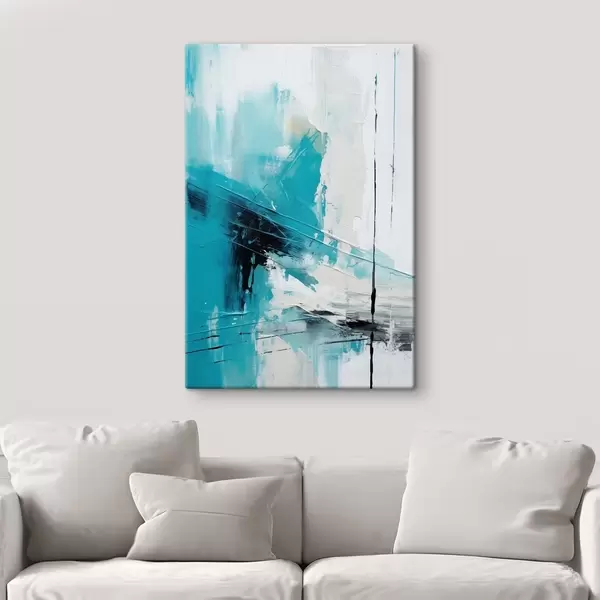 Pictură pe pânză Linii turcoaz pe fond alb cu o linie neagră Nr s46545