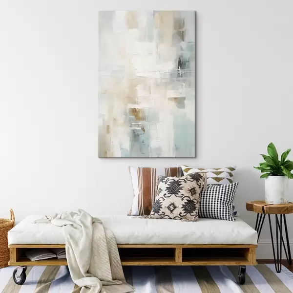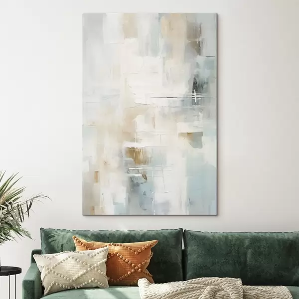 Pictură pe pânză Tușe aerisite de albastru și bej pe fond alb Nr s46547
