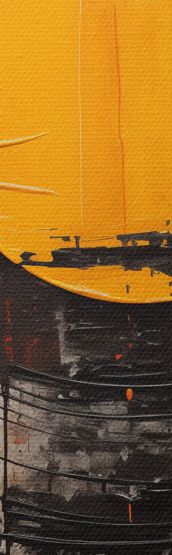 Tablouri Disc portocaliu în interiorul unui inel negru, linii și pete s46550