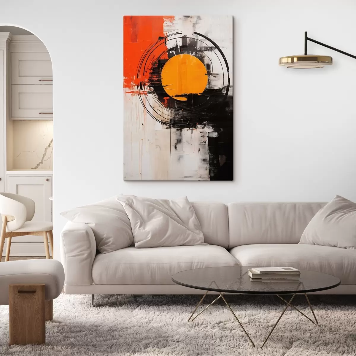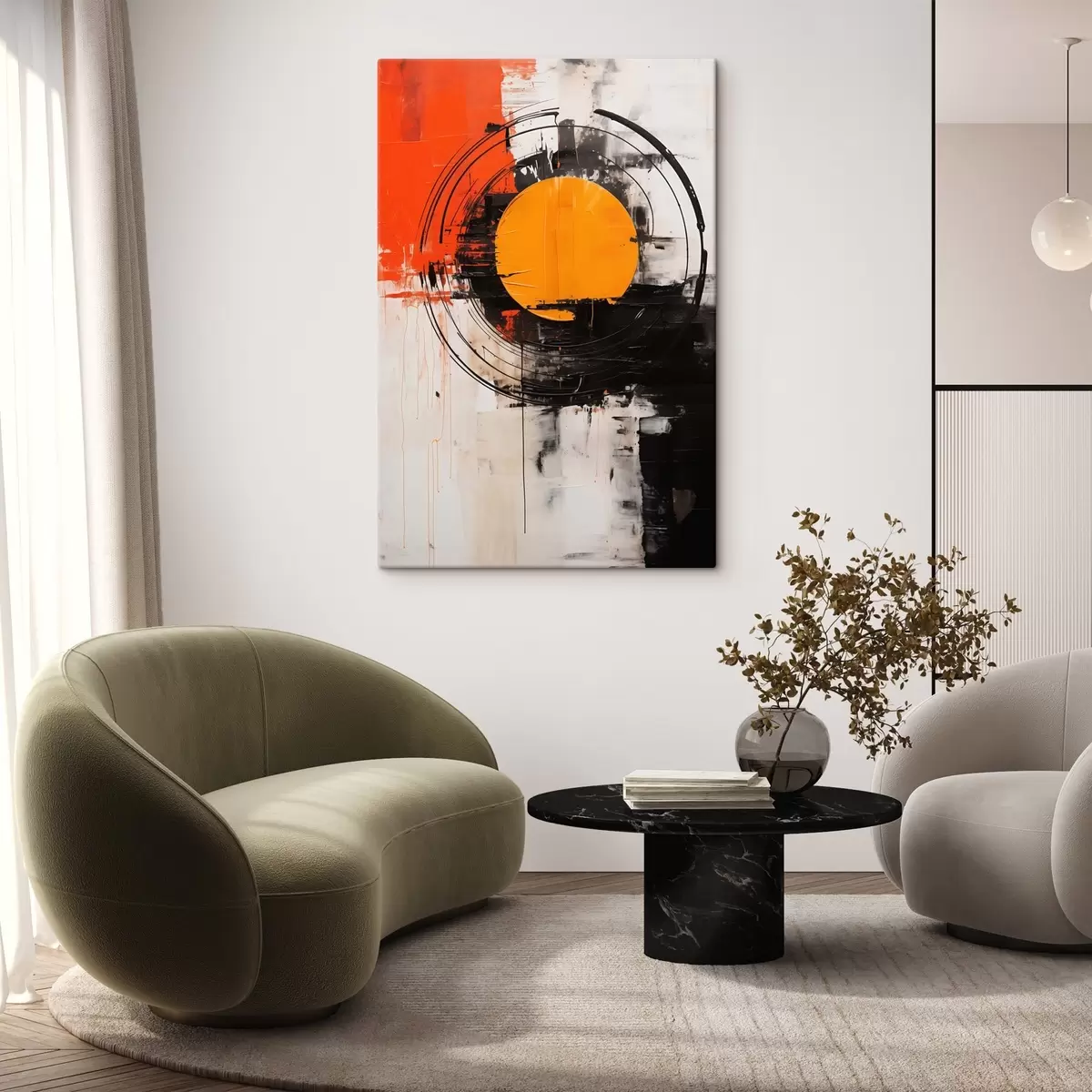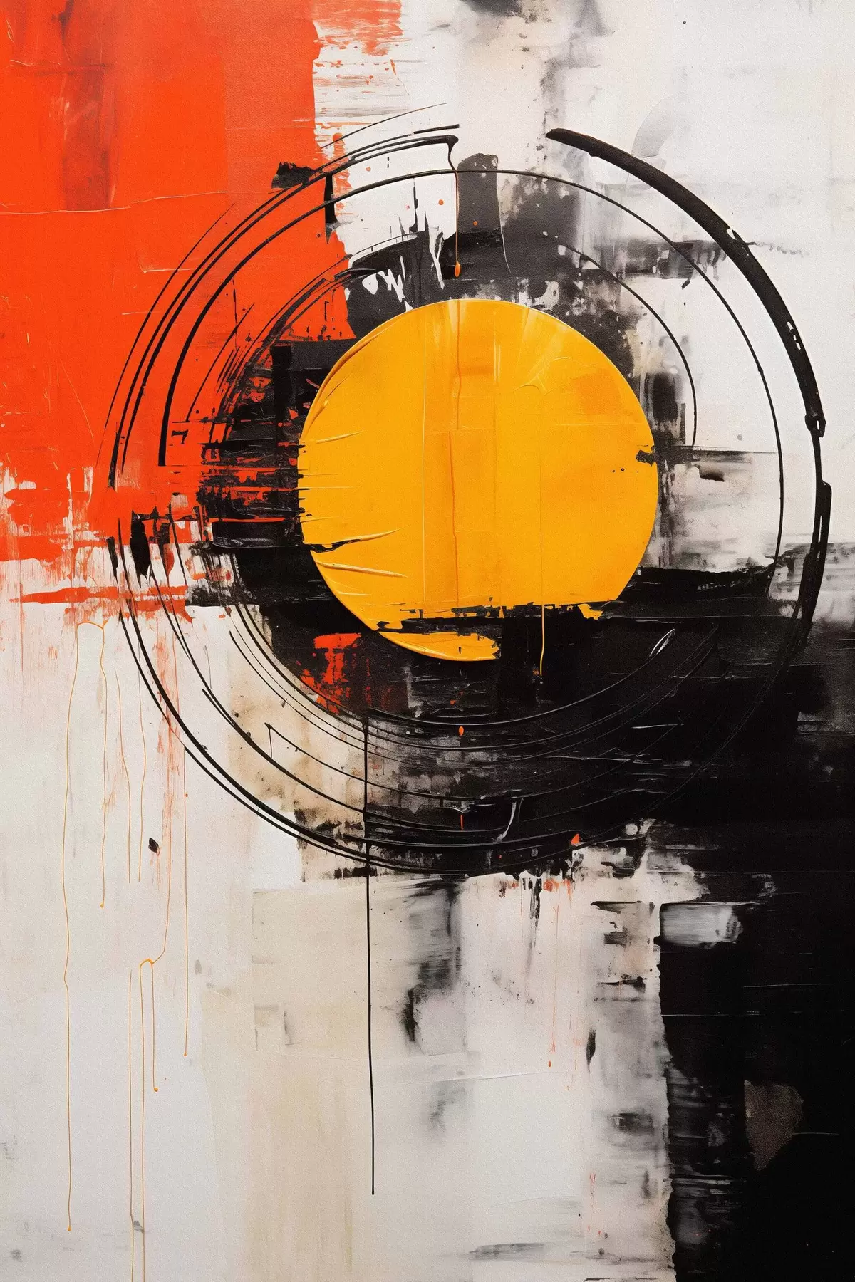 Tablouri Disc portocaliu în interiorul unui inel negru, linii și pete s46550