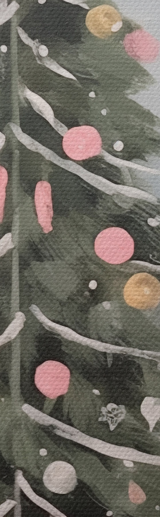 Pictură pe pânză Mașină roz și brad de Crăciun împodobit în fața casei Nr s46621