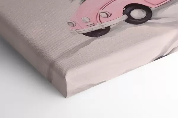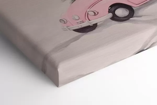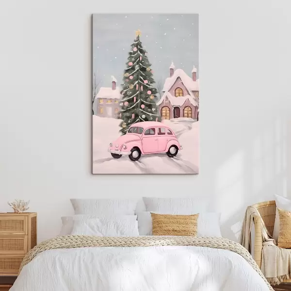 Pictură pe pânză Mașină roz și brad de Crăciun împodobit în fața casei Nr s46621