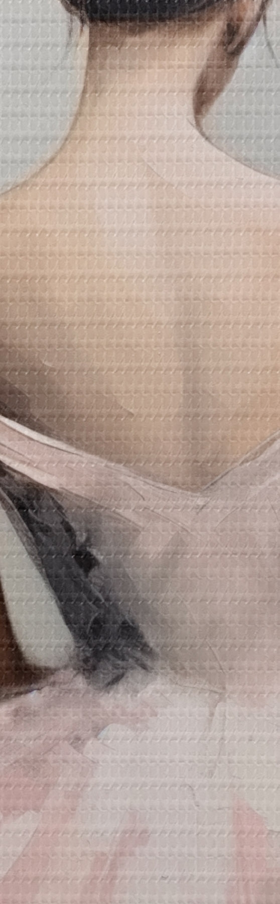 Țesătura fină a firelor de pe această pânză seamănă cu suprafața pânzelor artiștilor profesioniști.
