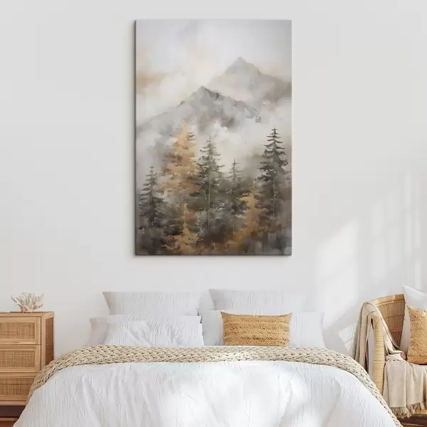Pictură pe pânză Pădure pe fundalul munților imitație de pictură Nr s46670