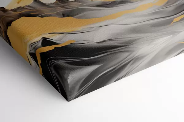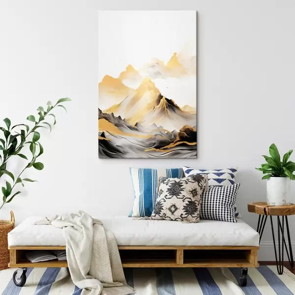 Pictură pe pânză Munți texturați galbeni și negri cu vârfuri înzăpezite, stil de pictură cu tuș, lanț muntos minimalist Nr s46684
