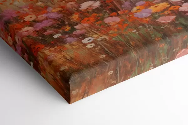 Pictură pe pânză Peisaj, un câmp cu flori colorate și munți în fundal, culori delicate și pastelate Nr s46685