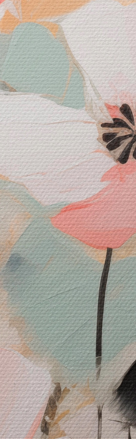 Pictură pe pânză Flori roz și negre cu frunze, culori pastelate delicate, aranjament floral abstract, artă minimalistă Nr s46688