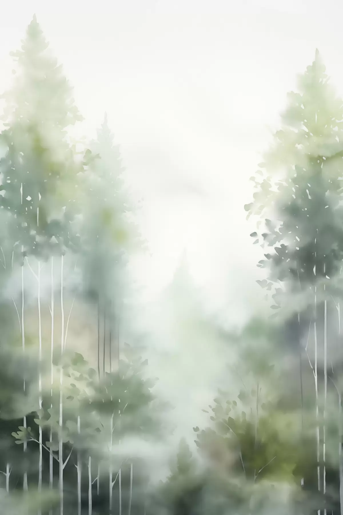 Tablouri Imitatie de pictura in acuarela reprezentand o padure abstracta cu copaci inalti si frunziș verde, culori delicate si discrete s46689