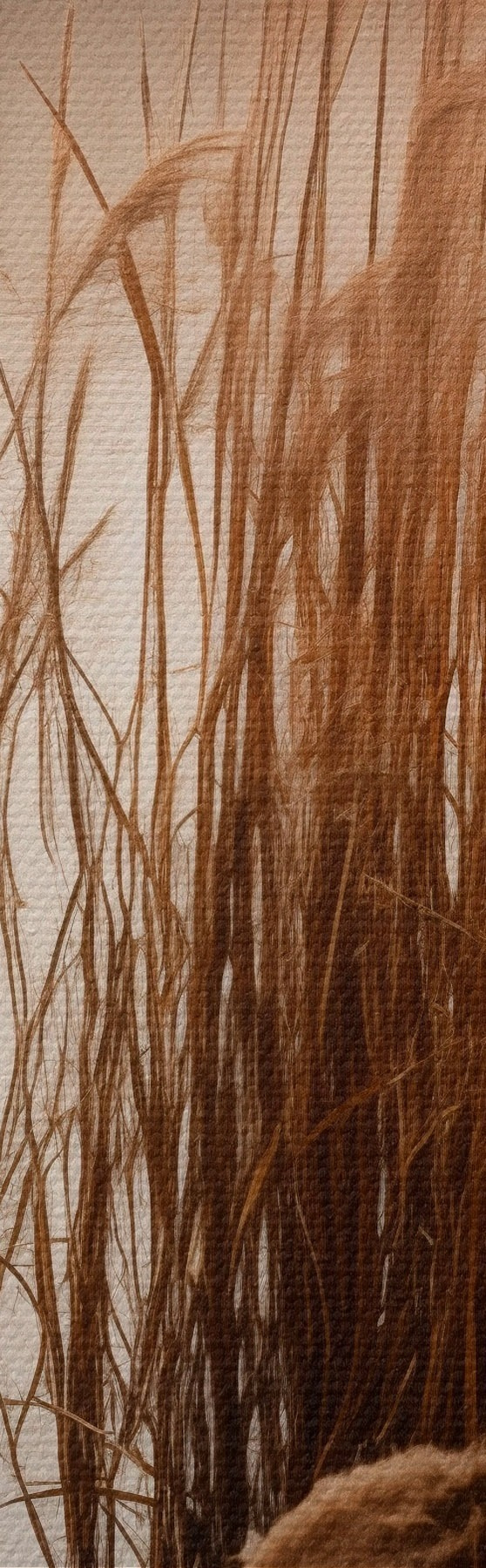 Pictură pe pânză Stuf înalt crescând într-un corp de apă, apa reflectă stuful, fundal cețos, lumină difuză, peisaj natural Nr s46695
