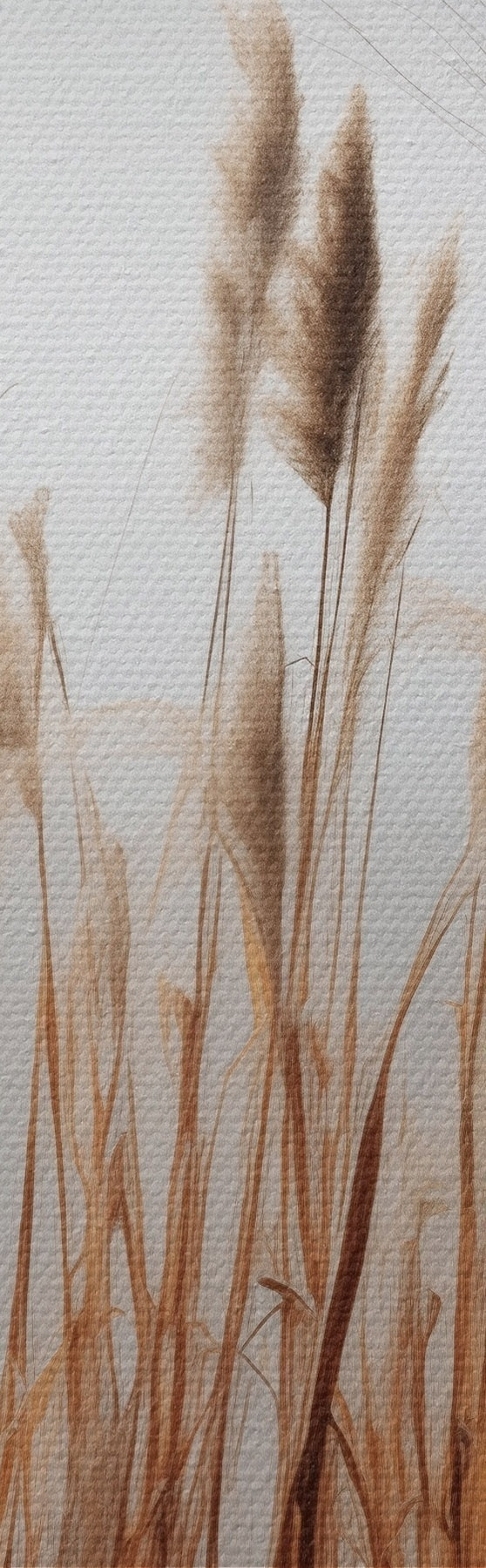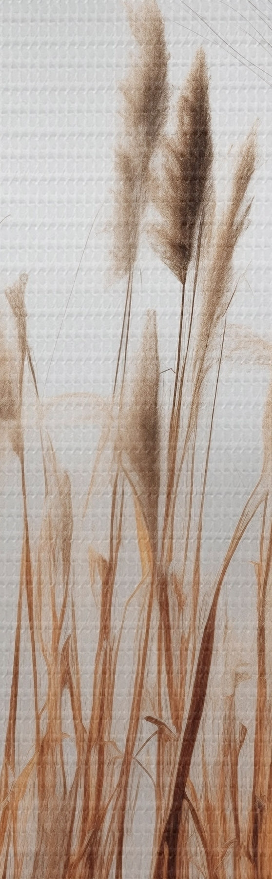 Pictură pe pânză Stuf înalt crescând într-un corp de apă, apa reflectă stuful, fundal cețos, lumină difuză, peisaj natural Nr s46696