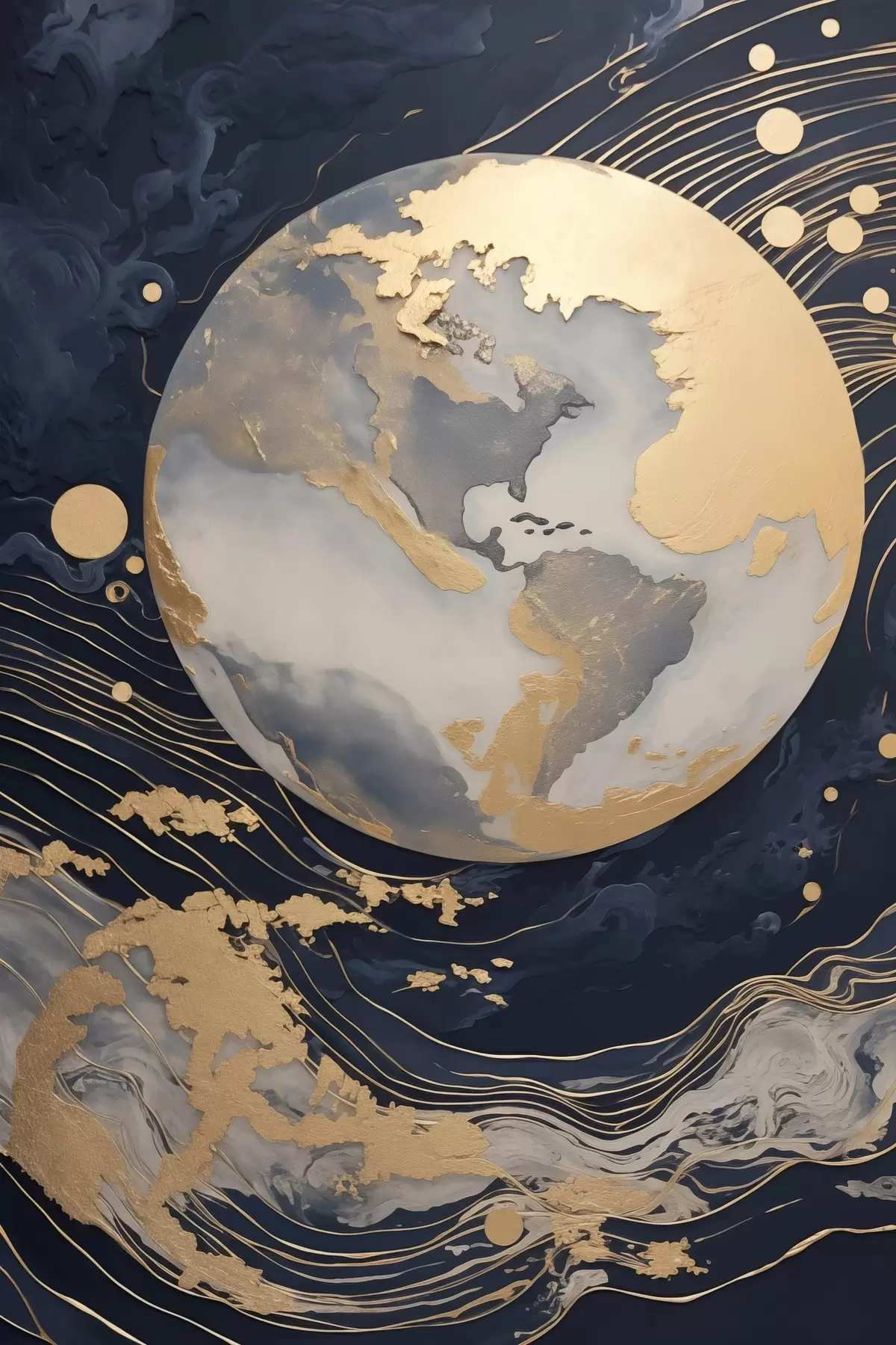 Tablouri Planetă decorativă texturată cu linii galbene pe fundal, puncte galbene pe fundal, fundal întunecat s46708