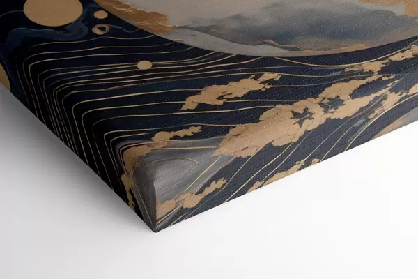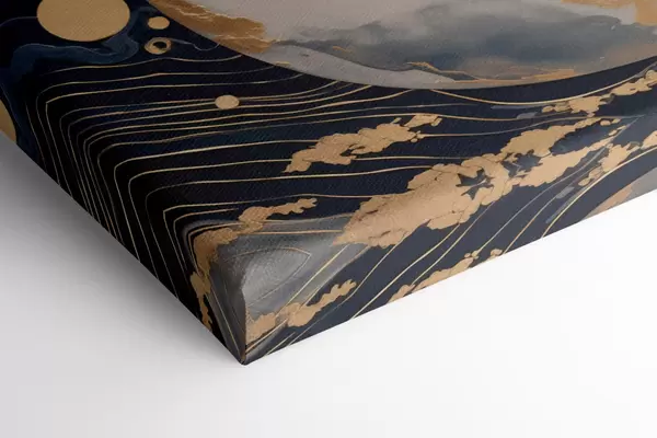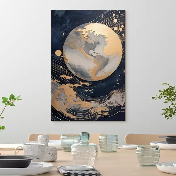 Pictură pe pânză Planetă decorativă texturată cu linii galbene pe fundal, puncte galbene pe fundal, fundal întunecat Nr s46708