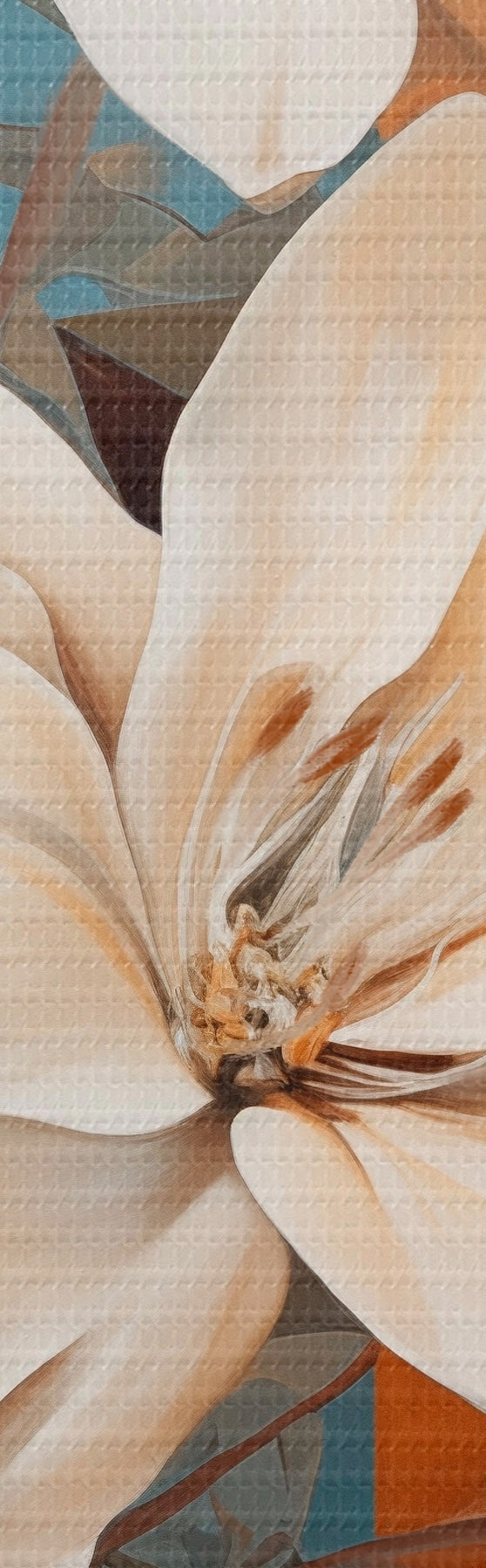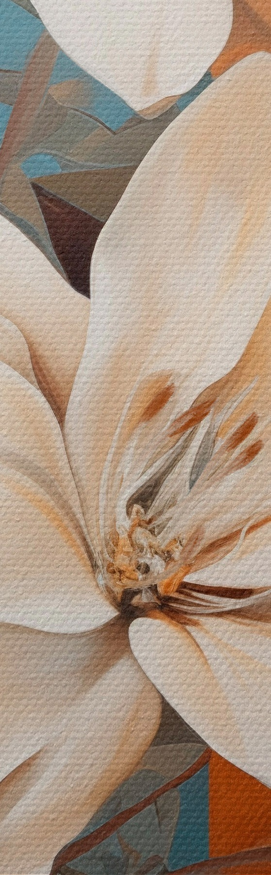 Pictură pe pânză Flori și frunze albe abstracte pe un fundal maro și albastru cu forme abstracte, într-un stil minimalist Nr s46710