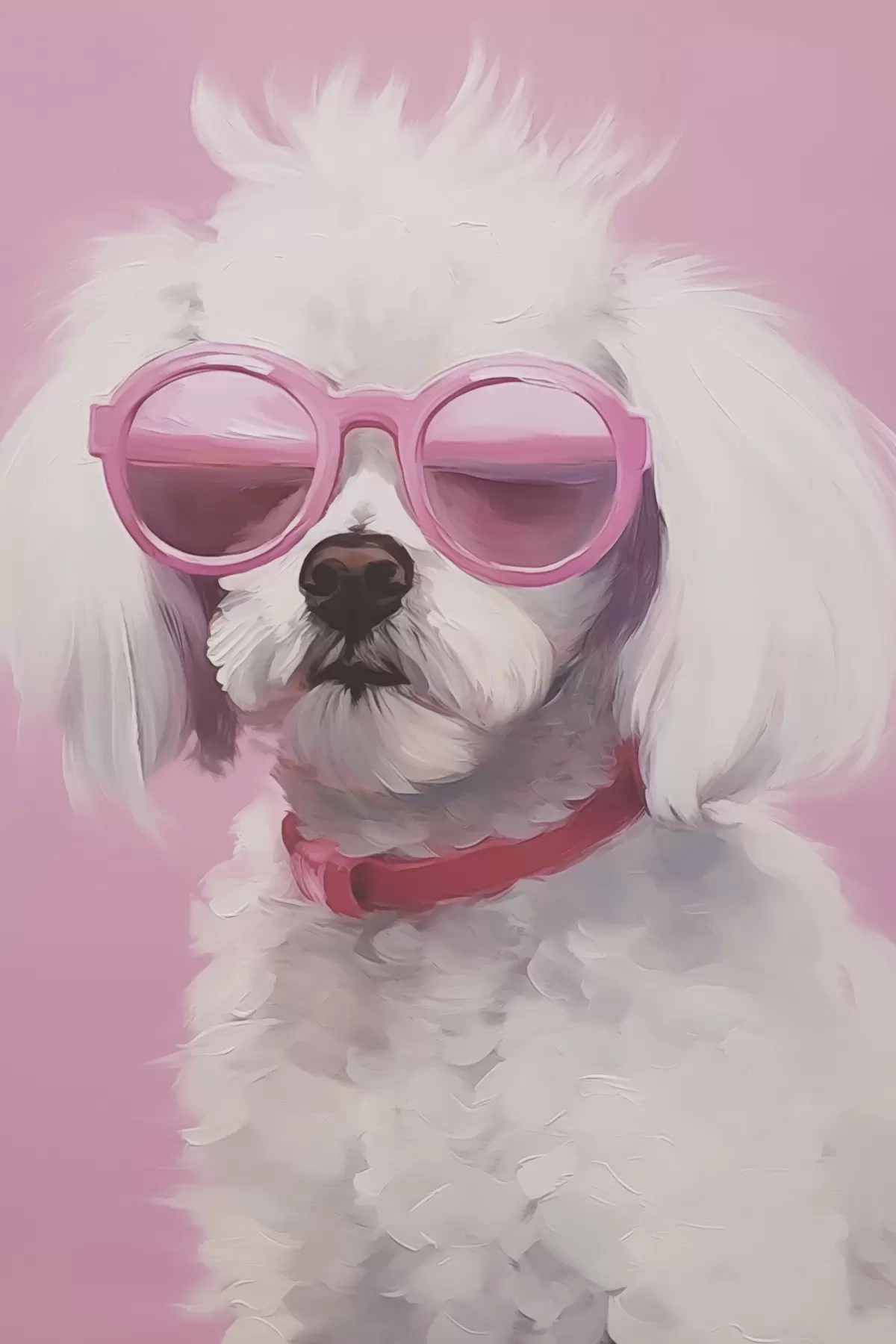 Pictură pe pânză Un câine mic care poartă ochelari este o imitație a picturii. Nr s46722