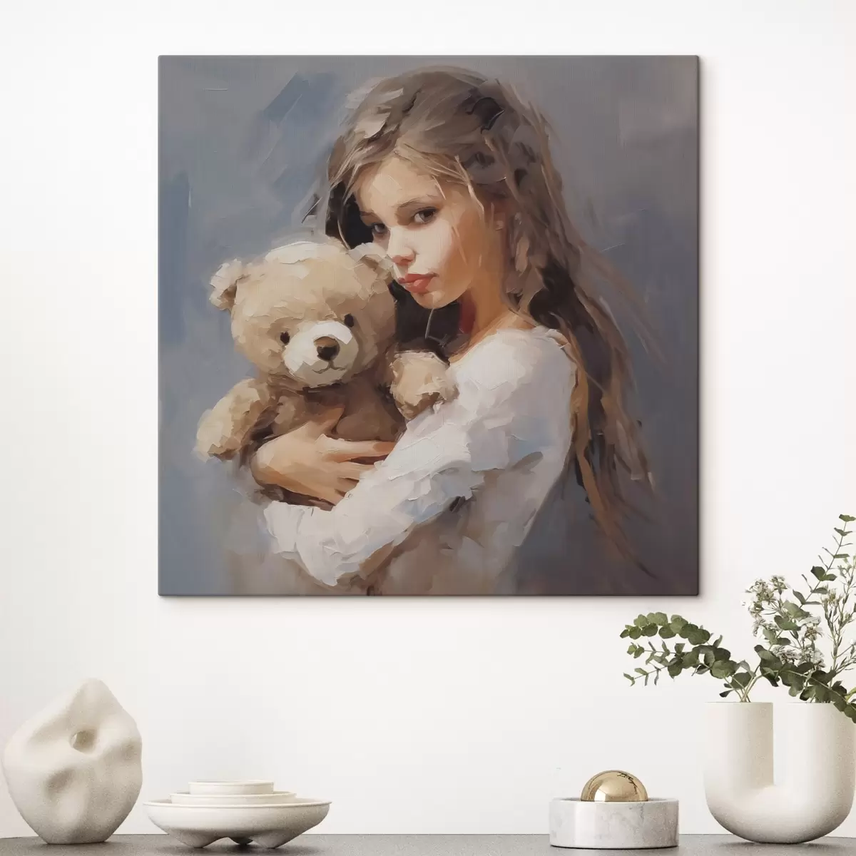 Pictură pe pânză Fată cu un ursuleț de jucărie, pictură imitație Nr s46746