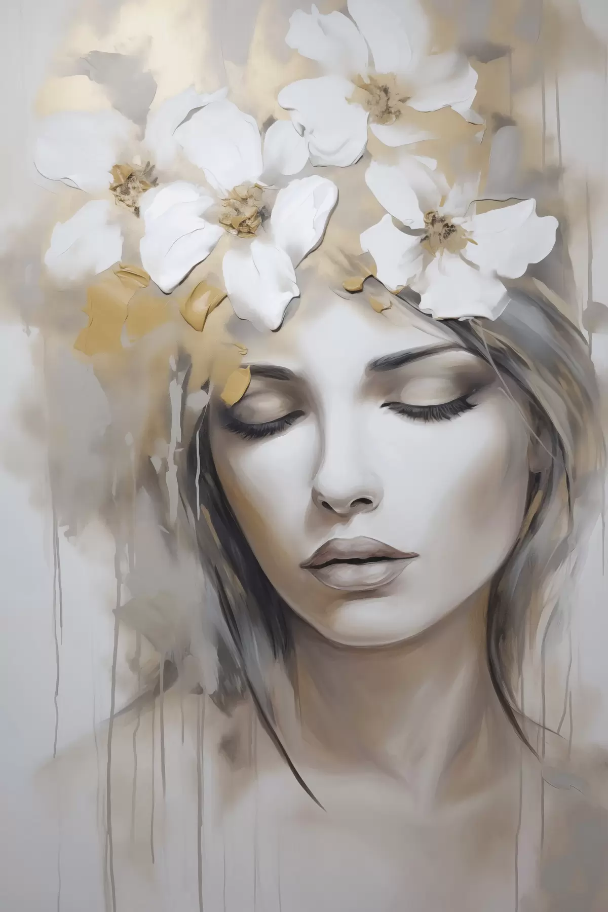 Tablouri Portret abstract al unei fete cu flori, imitație de pictură s46756