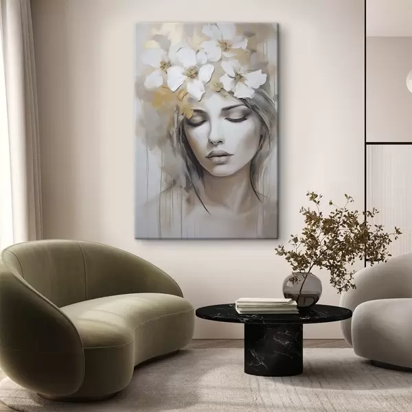 Tablouri Portret abstract al unei fete cu flori, imitație de pictură s46756