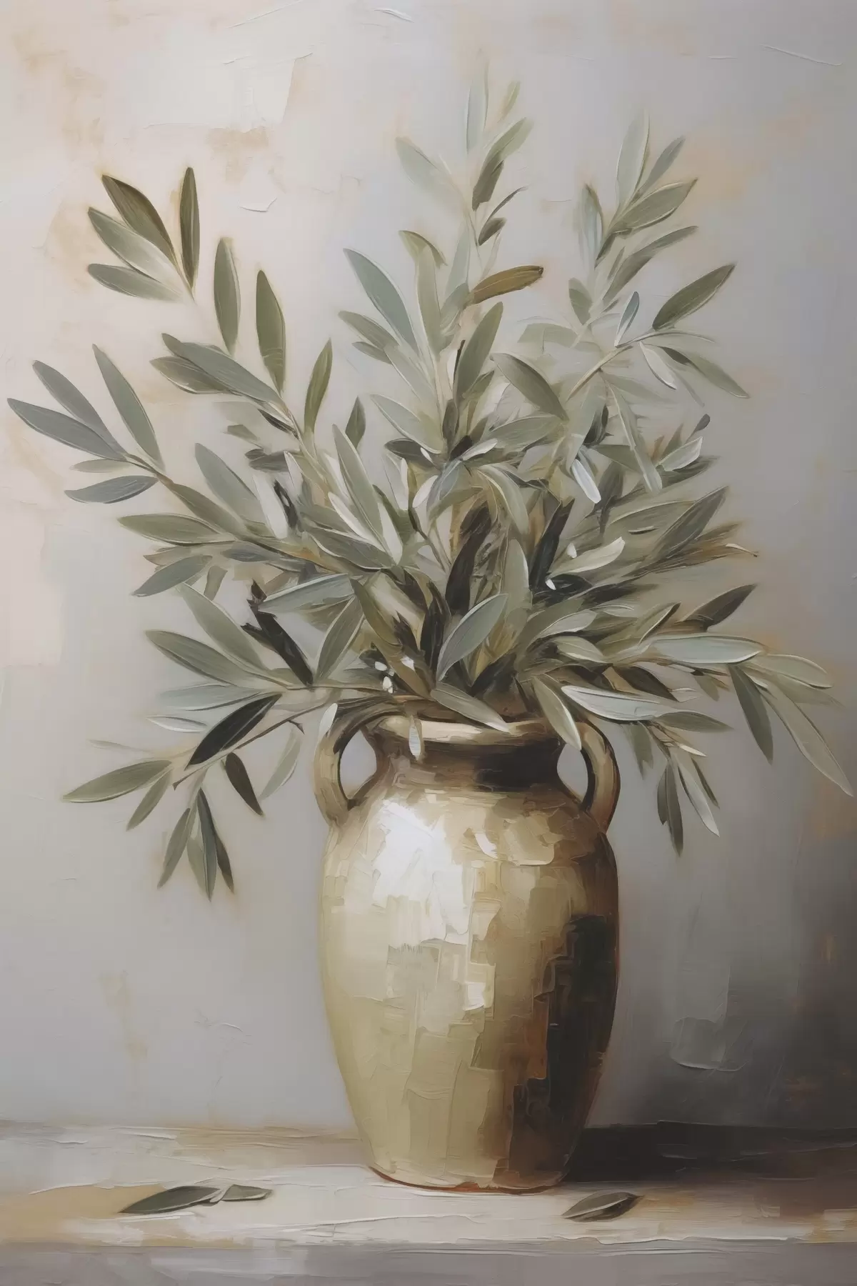 Pictură pe pânză Ramuri de măslin într-un vas pictură imitație Nr s46758