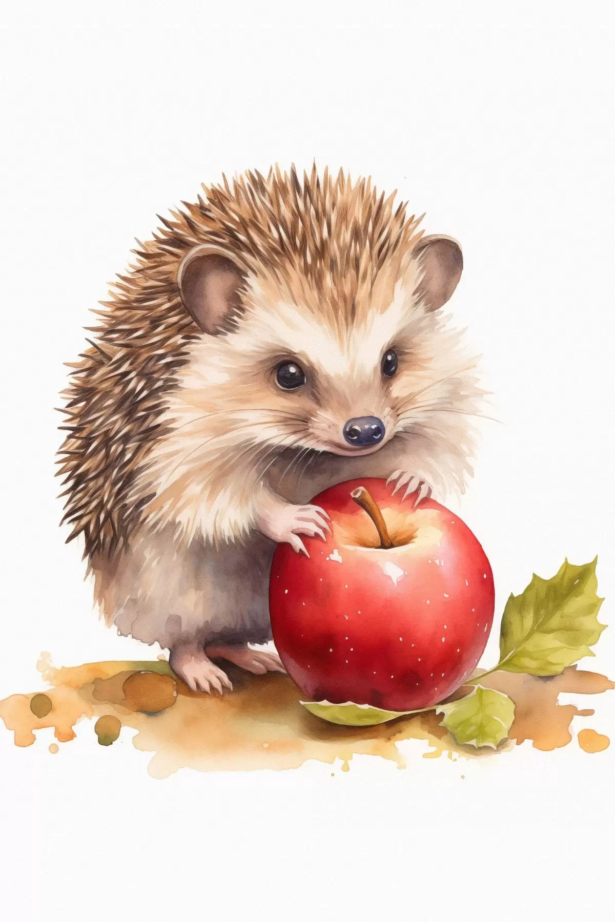 Tablouri Arici și măr, imitație de acuarelă s46769