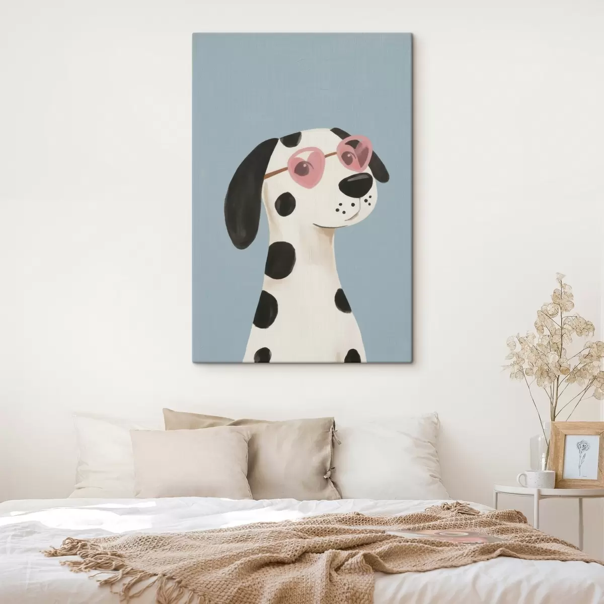Pictură pe pânză Câine cu ochelari roz Nr s46844