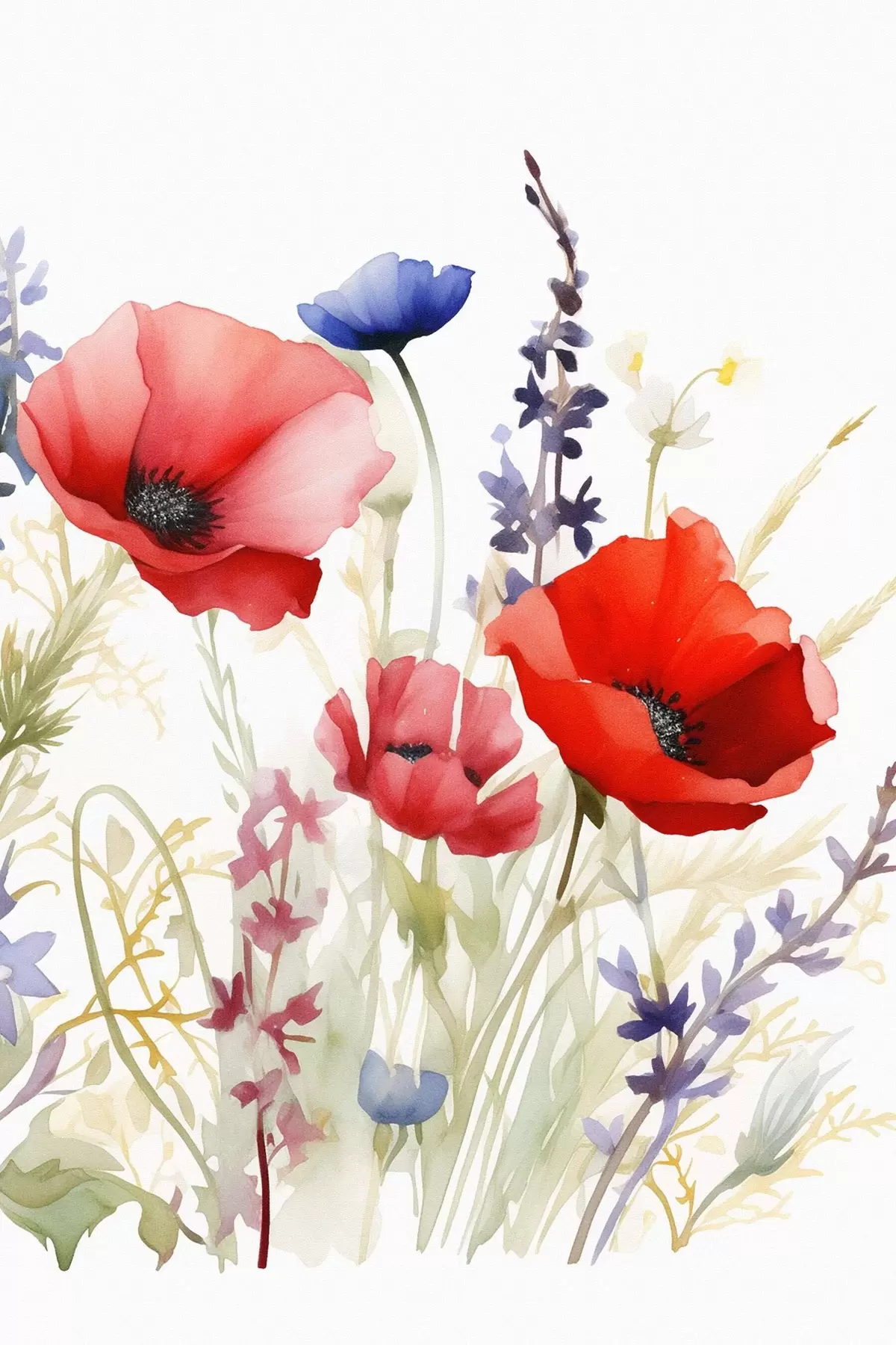 Tablouri Inflorescențe de mac, imitație acuarelă s46888
