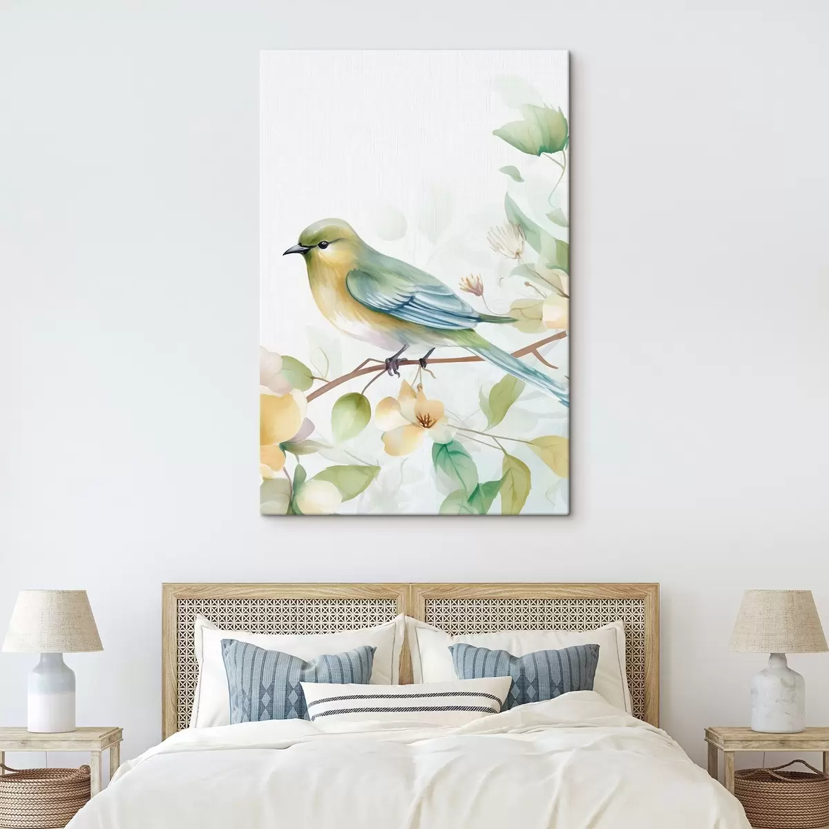 Pictură pe pânză Păsărică pe o ramură, imitație de acuarelă Nr s46892